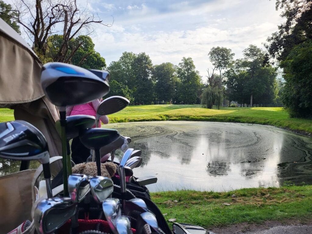 The trees aren’t the only challenges at Bent Oak. There are water hazards on seven of the holes, and honestly, I felt like I found every single one. Marc, on the other hand, appeared to have dialed in his fade shot and seemed to avoid every water hazard and bunker throughout the day!