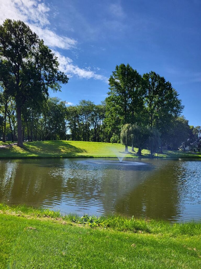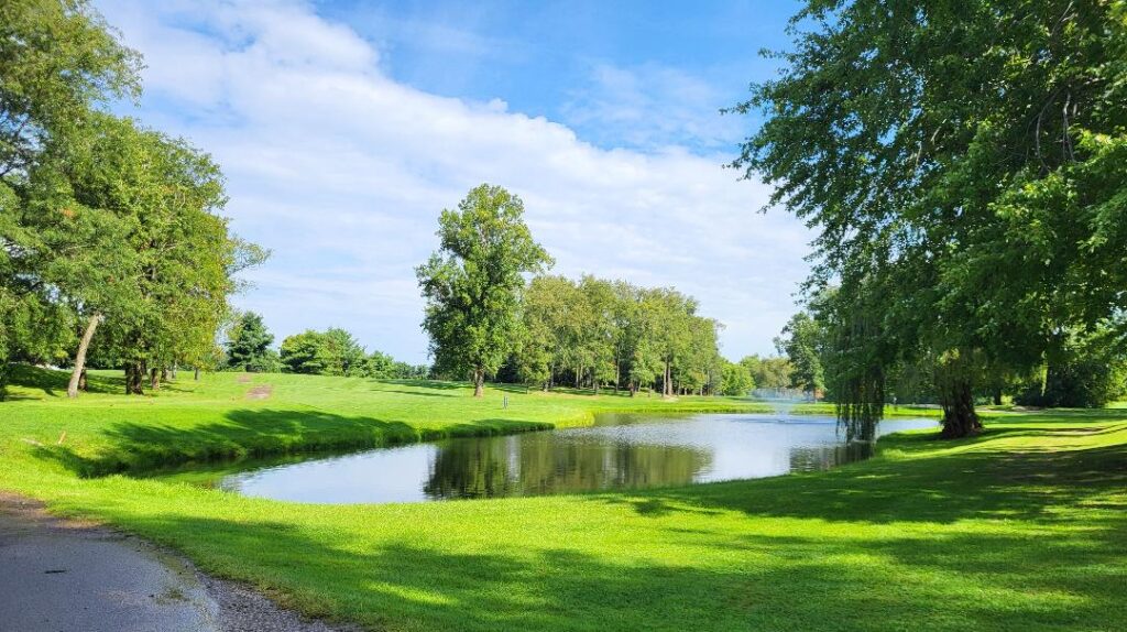 OK – back to celebrating Marc’s birthday. We decided to play Bent Oak Golf Club, just a few minutes from the Elkhart Campground. Bent Oak Golf Club is an 18-hole course designed by Gary Keaffaber in 1985. And we were not disappointed.