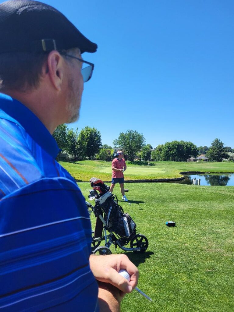 - Being able to talk through my troubles on the course. I have never felt that it is easy to learn the game of golf on my own. When I make a mistake, I wonder where I messed up? How can I improve that shot?….and so on. I’ll sit there talking to myself, while trying to do an analysis on my swing without actually being able to see it with my own two eyes. Having a friend golfing with me gives me a chance to talk through my troubles that I am having out on the golf course. When my golf friend is with me and I make a mistake, I can vocalize my frustration. (And believe me – I most certainly vocalize my frustration!) Perhaps they saw something in my swing that can be easily corrected. It could be something as simple as moving the position of my hands or my feet.